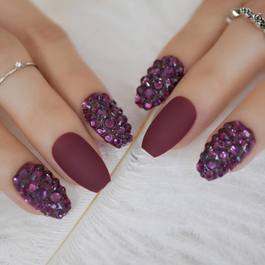 Red Wine Matte Coffin Press On Nails