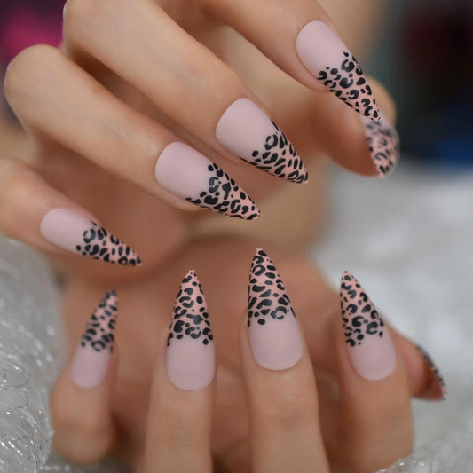 Pink Leopard Matte Point Press On Nails