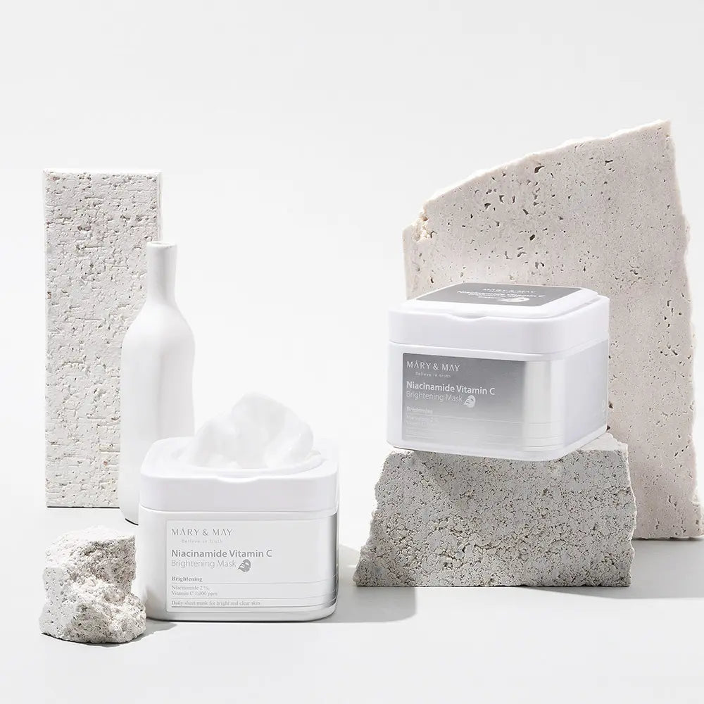Mary&May Niacinamide + Vitamin Brightening Mask Pack, containing niacinamide + vitamin C that brightens dull and darkened skin, daily brightening care mask pack, 30 sheets/400g